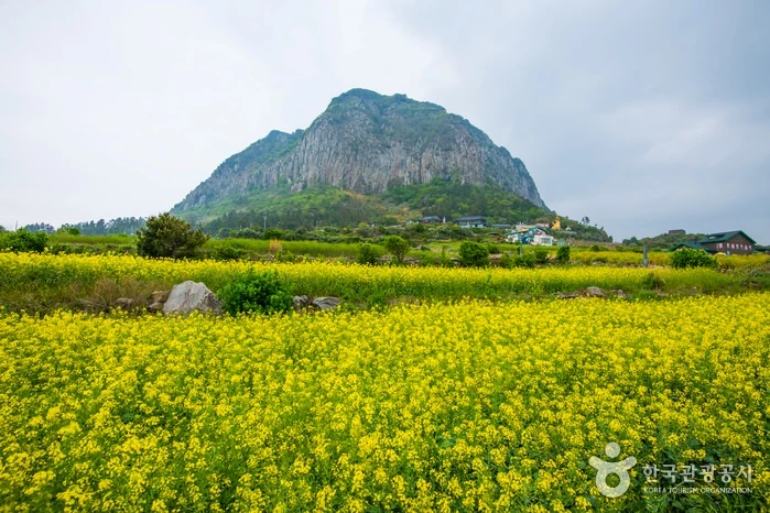 이 곳은 수천만년 동안 쌓이고 쌓여 이루어진 사암층 중 하나이다. 해안 절벽을 모진 파도가 때려서 만들어 놓은 해안 절경이다. 용머리라는 이름은 언덕의 모양이 용이 머리를 들고 바다로 들어가는 모습을 닮았다하여 붙여졌다. 전설에 의하면 용머리가 왕이 날 휼륭한 형세임을 안 진시황이 호종단을 보내어 용의 꼬리부분과 잔등 부분을 칼로 끊어 버렸는데 이때 피가 흘러내리고 산방산은 괴로운 울음을 며칠째 계속했다고 한다. 자료출처 : 대한민국 구석구석(http://korean.visitkorea.or.kr) 펜션에서 차량으로 약 25분, 13.3km