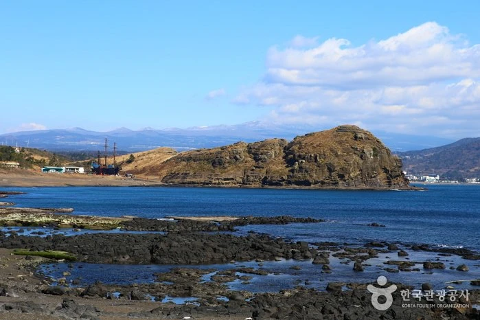 제주도 서남부의 평야지대에 우뚝 서 있어 어디에서도 조망이 가능한 종 모양의 종상화산체다. 용암돔 남측 절벽의 높이 150~300m 사이에는 다양한 모양과 크기의 풍화혈과 애추가 발달되어 있고, 해발 150m쯤에 길이 약 10m, 너비와 높이가 약 5m인 산방굴이라고 하는 해식동굴이 바다를 향해 특색 있는 경관을 이루어 있어 영주십경의 하나이다. 자료출처 : 대한민국 구석구석(http://korean.visitkorea.or.kr) 펜션에서 차량으로 약 21분, 11.7km